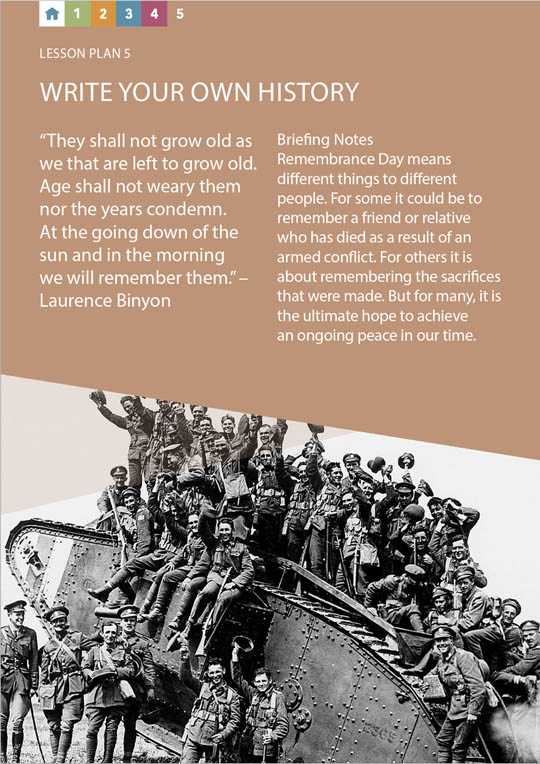 There are five resources for Key Stage 2 pupils. They have been designed for use as a group activity but can be adapted to individual study. The resources will help pupils develop skills and understanding in genealogy, research, oral history and remembrance.